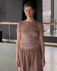 Product Details Velour tee Crewneck Model wears a size S 88% Ecovero Viscose 12% Recycled Polyester Made in Portugal Fiber origin - Austria Spun in Croatia/China Knitted in Portugal Sewn in Portugal Material Ecovero viscose Origin: Austria Certifications: EU Ecolabel, FSC, PEFC - We use Ecovero viscose. - The bleaching is chlorine free. - The wood fibers are fully traceable to sustainably managed forests in Europe. - 60% of the trees used come from Austria and Bavaria where the fabric is also produced. - Nearly all chemicals used during production are recovered and reused. - The whole supply chain from production to disposal has a low environmental impact, which has been certified by the EU Ecolabel. - The production requires up to 50% less water and up to 50% less CO2 emissions than generic Viscose.