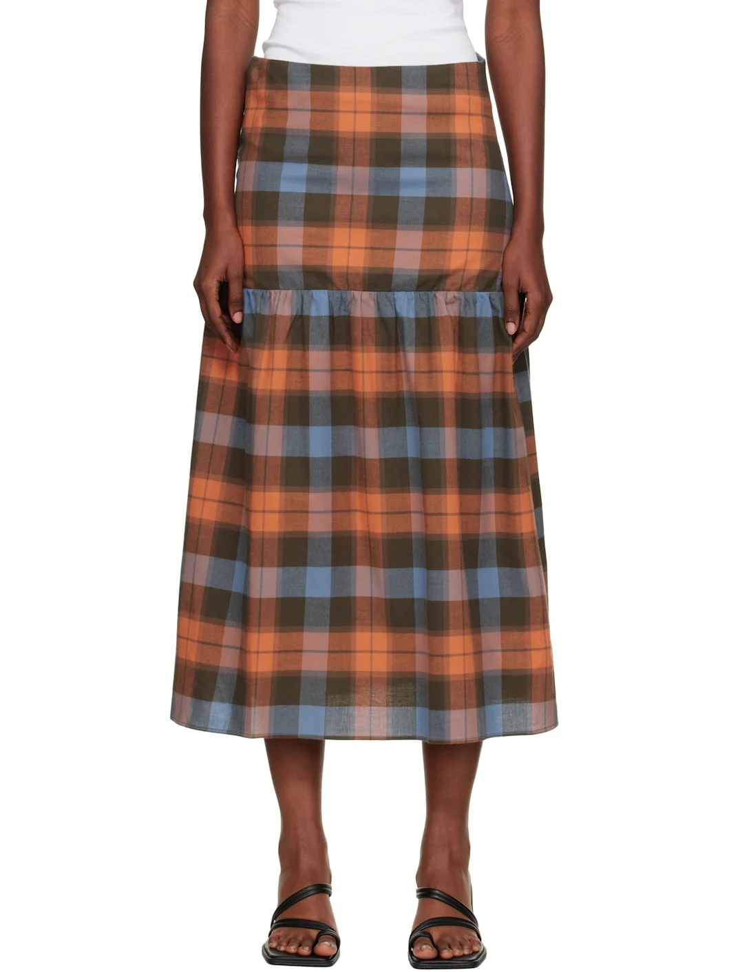 Organic cotton flannel maxi skirt. · GOTS-, OEKO-TEX®-, and OCS 100-certified · Check pattern throughout · Gathering at drop waist · Button closure at side Supplier color: Frame plaid 100% organic cotton. Made in Portugal 252922F093005