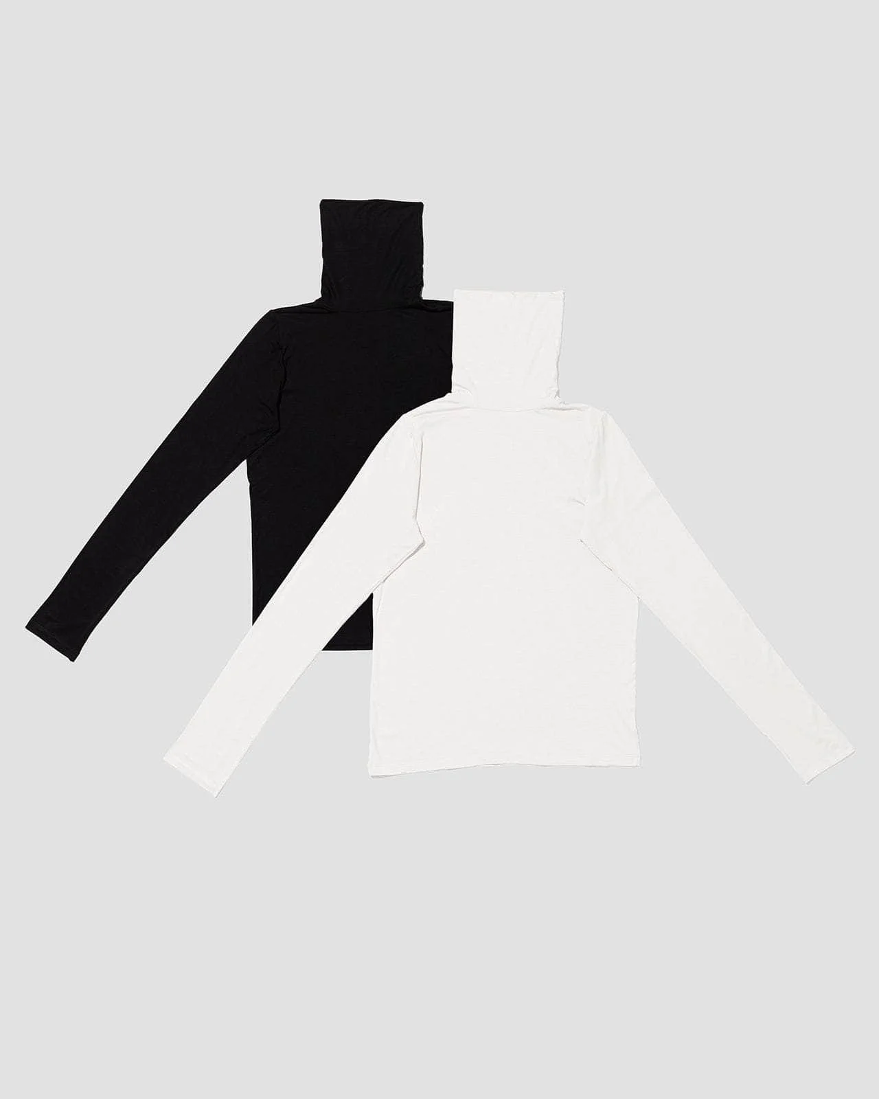 Product Details Pack of 2 bamboo lyocell long sleeves Turtleneck 93% Bamboo Lyocell 7% Elastane Made in Portugal Model wears a size S Save 15% on unit price with this pack Material Lyocell Origin: China Certificates: FSC - Lyocell is a manmade fiber made of natural regenerated cellulose. - The lyocell process eliminates toxic chemicals and reactions and reduces air and water emissions. - Lyocell is made from traceable wood pulp harvested from FSC-certified farms. The farms have been established on land unsuitable for food crops or grazing. - Lyocell is made of eucalyptus or bamboo trees that don’t require irrigation or pesticides and grow fast. - Lyocell fiber production itself is more environmentally friendly than cotton due to its closed-loop process. This means that up to 99% of the water and solvents used are reused. - Manufacturing lyocell does not require bleach. - Lyocell fiber is stronger than viscose both when dry and wet. - Sea cell is a similar fiber made from seaweed and sea algae with therapeutic qualities.