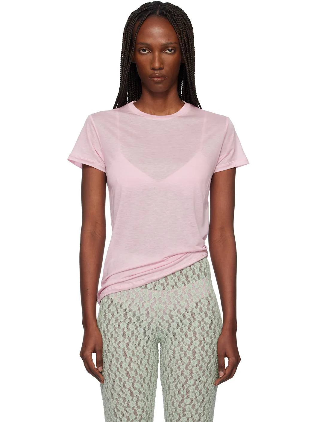 Semi-sheer cotton jersey T-shirt. Rib-knit crewneck. Supplier color: Doro Pink 100% bamboo lyocell. Made in Portugal 252922F110039