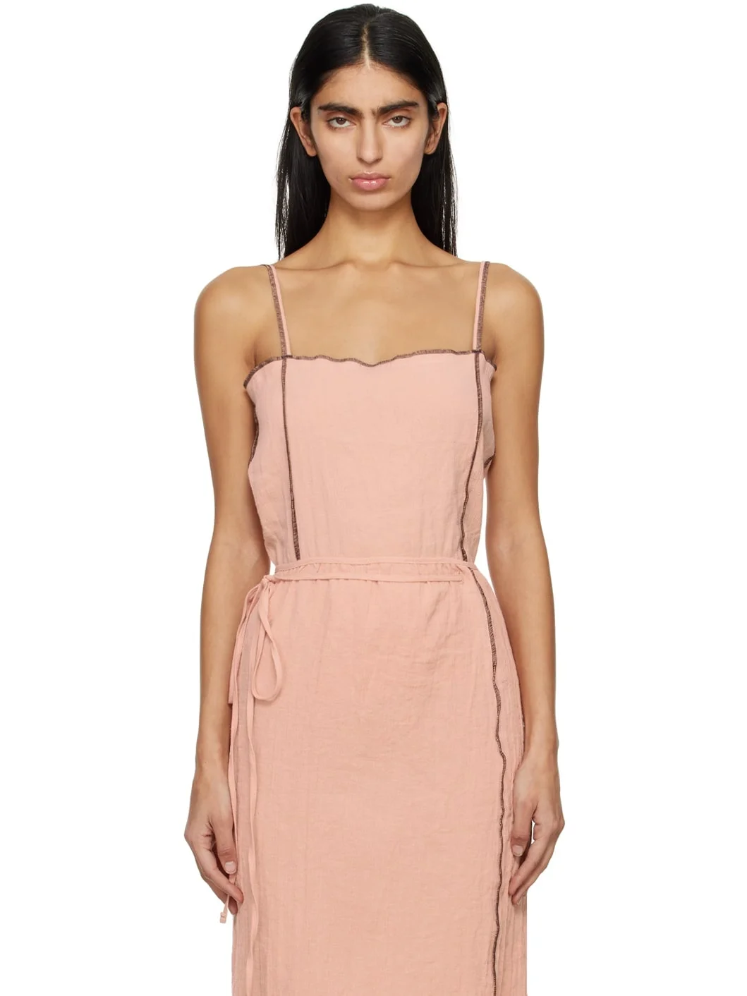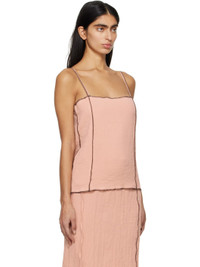 OEKO-TEX®-certified linen- and organic cotton-blend crepon tank top. Inverted seams throughout. · Straight neck · Fixed spaghetti straps · Contrast stitching in brown Supplier color: Rose 74% linen, 26% organic cotton. Made in Turkey 241922F111012