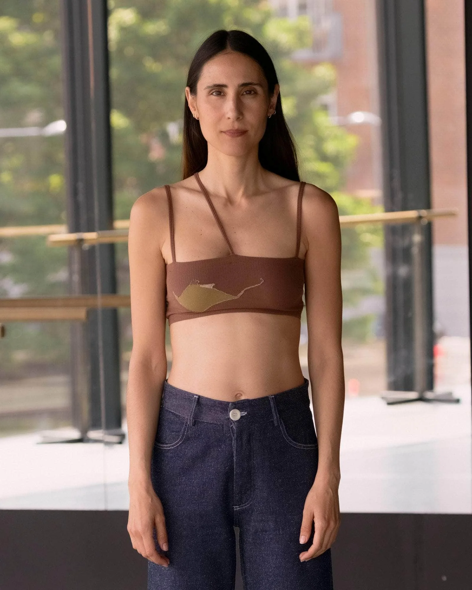 Product Details Fine cotton rib bra Hand mended Patchwork details One of a kind Elastic trim at hem Thin shoulder straps and third asymmetrical strap Lined Supportive for large, medium, and small bust 91% Organic Cotton 9% Elastane Made in Denmark This item is a repaired size S. All repair items are final sale. Read more about the repair process here.