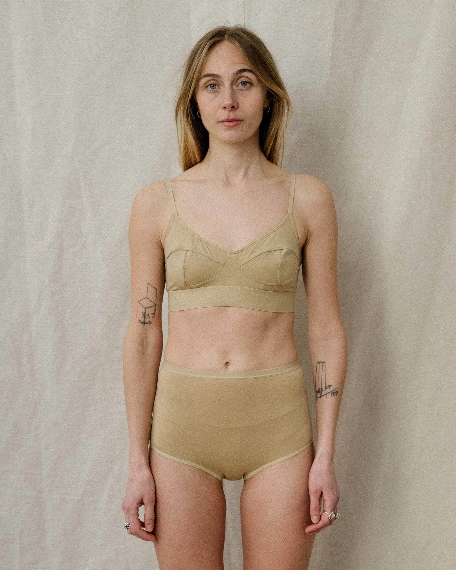 Product Details Bamboo lyocell bra Elastic trim at neckline and hem Supportive seamed cups Thin adjustable straps Supportive for large, medium, and small bust Model wears a size S 93% Bamboo Lyocell 7% Elastane Made in Portugal Fiber origin – China Spun in Portugal/Brazil Knitted in Portugal Sewn in Portugal Material Lyocell Origin: China Certificates: FSC - Lyocell is a manmade fiber made of natural regenerated cellulose. - The lyocell process eliminates toxic chemicals and reactions and reduces air and water emissions. - Lyocell is made from traceable wood pulp harvested from FSC-certified farms. The farms have been established on land unsuitable for food crops or grazing. - Lyocell is made of eucalyptus or bamboo trees that don’t require irrigation or pesticides and grow fast. - Lyocell fiber production itself is more environmentally friendly than cotton due to its closed-loop process. This means that up to 99% of the water and solvents used are reused. - Manufacturing lyocell does not require bleach. - Lyocell fiber is stronger than viscose both when dry and wet. - Sea cell is a similar fiber made from seaweed and sea algae with therapeutic qualities.