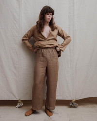 Product Details Linen pant Elastic waistband Runs big, consider sizing down Model wears size S 100% Linen Made in Turkiye Fiber origin - France/ Belgium Spun in China Woven in Turkiye Sewn in Turkiye Material Linen Origin: France, Belgium Certificates: Oeko-Tex - Linen is a bast fiber. - Linen requires no irrigation and can be grown even in poor soil. It requires no chemicals. - Linen is grown in rotation, nourishing the soil for other crops. It is also always non-GMO. - A breathable fabric, linen is strong and absorbent. It’s more durable and dries faster than cotton. Its naturally cooling properties make it an appealing summer wear and layering option. - Linen production is almost zero waste and leftovers like flax dust can be used for insulation. The seeds can provide oil and the by-products of linen production can be processed into a pulp. - As linen fabric is said to get softer with age and each wash, having and caring for a linen garment for a long time is covetable.