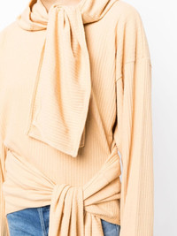 Tour ribbed jumper Highlights - Beige - Organic cotton blend - Ribbed knit - Crew neck - Self-tie fastening - Drop shoulder - Long sleeves - High-low hem Imported Composition Organic Cotton 85%, Hemp 15% SIZE & FIT Model measurements Height 5 ft 10 in(1.77 m) Bust/Chest 31.49 in(80 cm) Hips 35.43 in(90 cm) Waist 25.19 in(64 cm) FittingInformation Designed for a slim fit that sits just away from the body offering a close yet comfortable fit The tie fastening gives an adaptable and personalised fit Made with a midweight knit, this piece offers some stretch This piece fits true to size – take your usual size Washing instructions Machine Wash