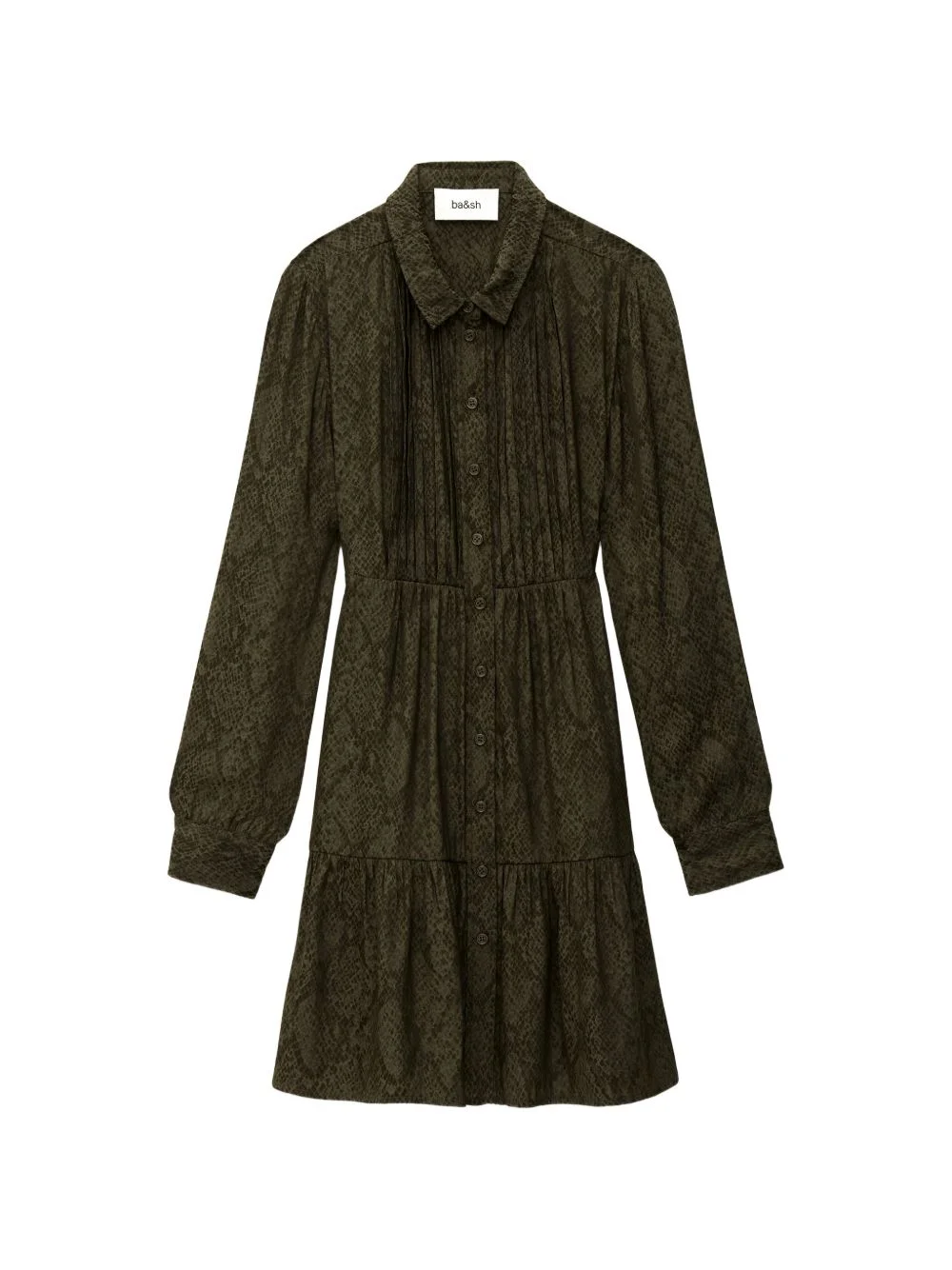 Rosyna snake-pattern mini dress Highlights - Green - Snake pattern - Button fastening - Long sleeves - Polo collar Imported Composition Polyester 100% Washing instructions Read Manufacturer Guidelines