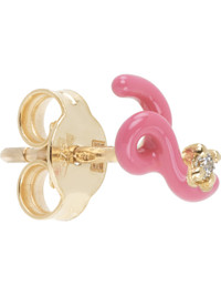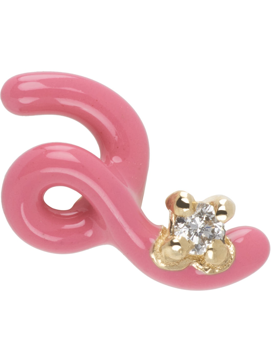 Single handcrafted enameled 9k gold stud earring in pink. · Prong-set 0.015 ct diamond at face · Post-stud fastening · H0.25" x W0.25" Supplier color: Diamond/Azalea 9k gold, diamond, enamel. Made in Italy 251172F009001