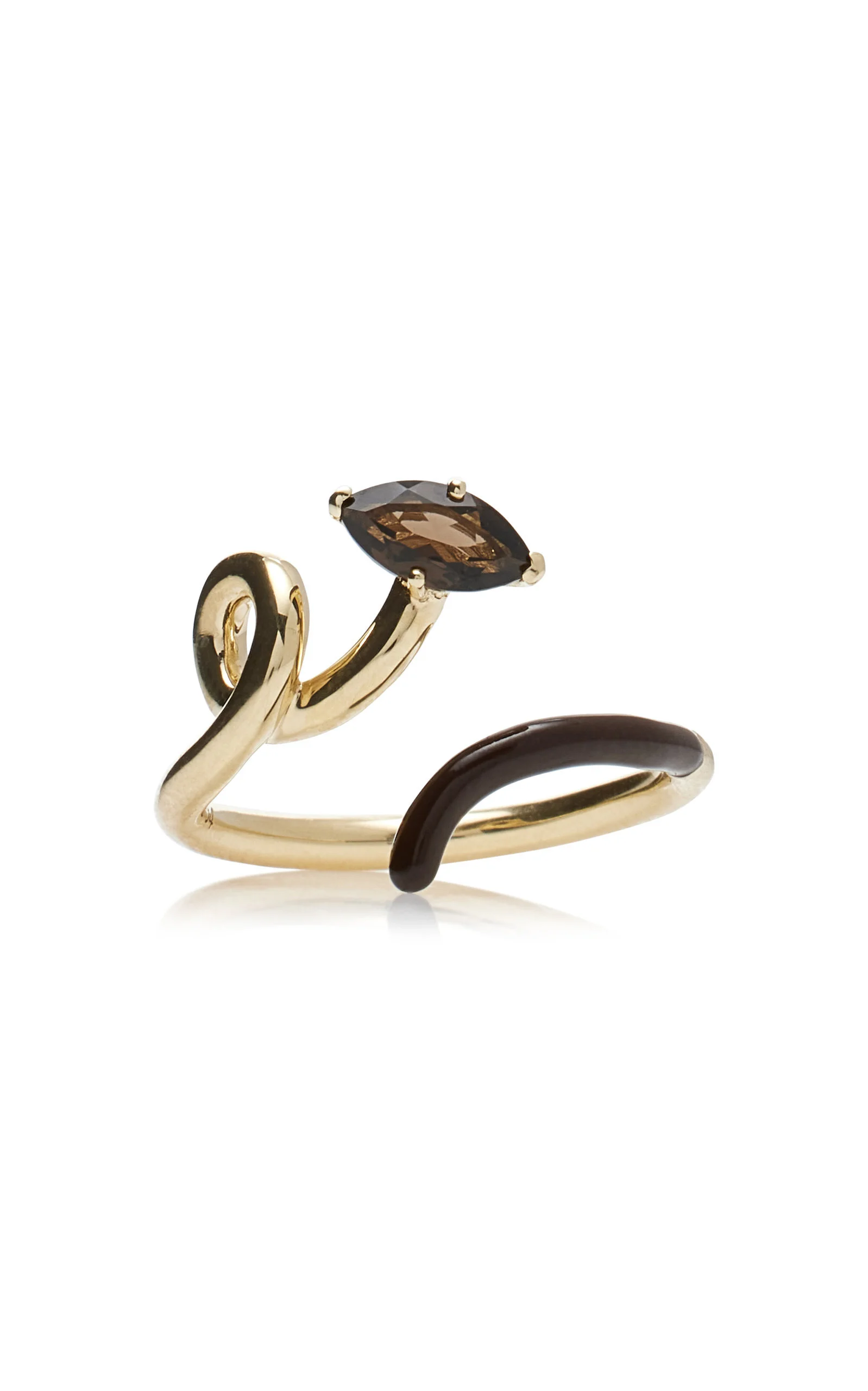 Milanese designer Bea Bongiasca's spirited and non-traditional take on fine jewelry stems from her passion for pop culture, contemporary art and design, and a deep love for everything colorful. With a focus on jewelry as an art form, each piece is handmade in Italy using 9k gold (so its price point remains accessible) fused with enamel to add kinetic movement. PRODUCT DETAILS - Composition: 9k yellow gold, 0.47ct marquise quartz B, enamel - Made in Italy - Please note the possibility of natural inclusions in gemstones