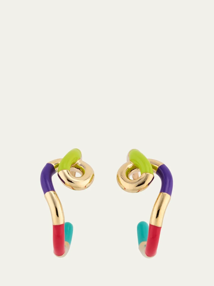 Bea Bongiasca earrings Approx. 0.75" x 0.25" 9karat gold over sterling silver Handpainted with enamel Easily clean with soap and water For pierced ears Butterfly backs Made in Italy