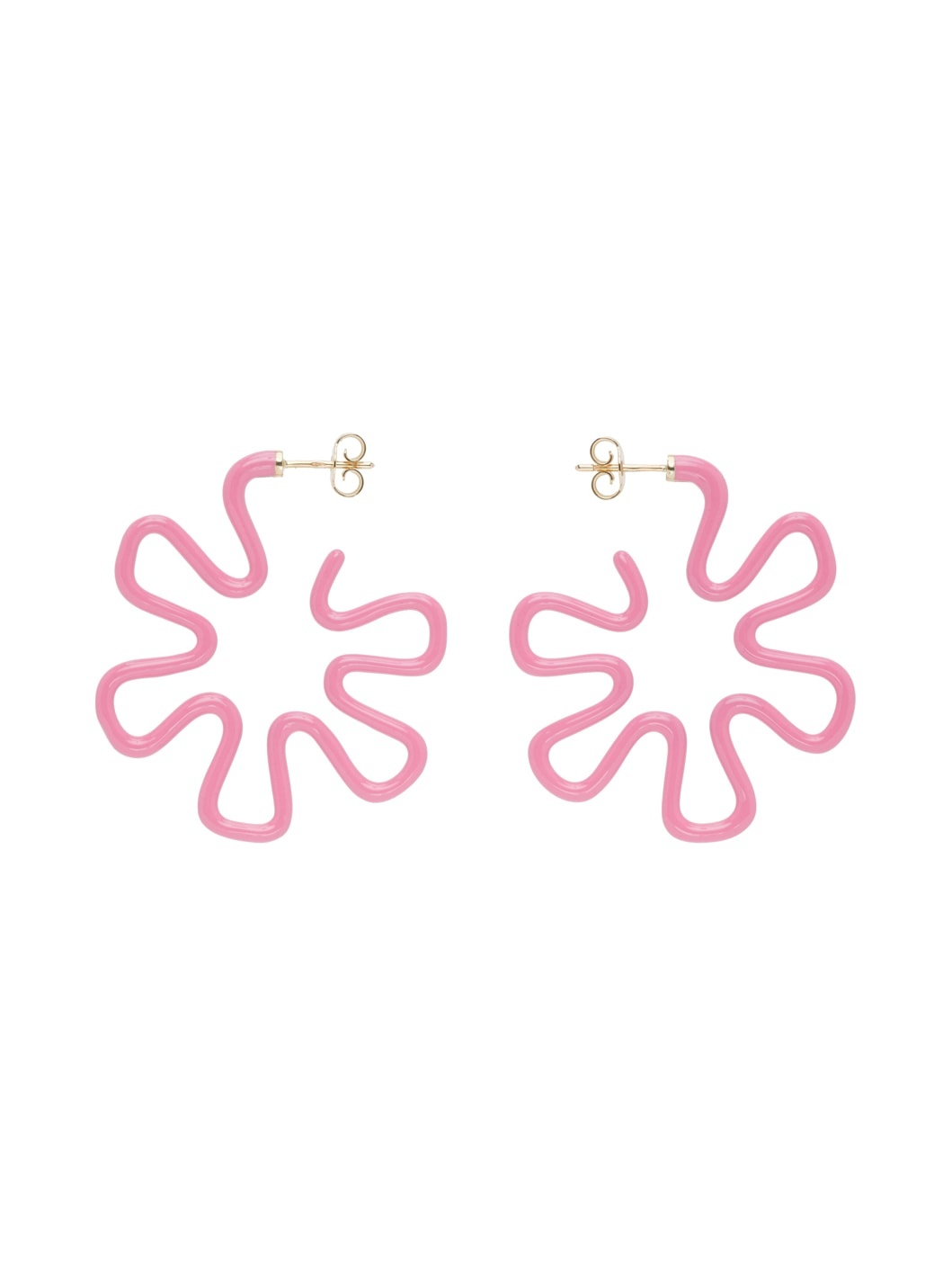Pair of handcrafted sculptural drop earrings in pink enamel. · Post-stud fastening · 9k gold-plated sterling silver hardware · H1.75" x W1.5" Each item is unique. Please note that finishings may vary. Supplier color: Pink enamel