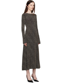 Semi-sheer plain-woven stretch nylon-blend maxi dress. Metallic thread detailing throughout. · Round neck · Flared hem · Slit at cuffs · Open back Supplier color: Black/Gold 92% nylon, 5% spandex, 3% metallic fibre. Made in Portugal 251868F055003