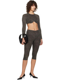 Semi-sheer plain-woven stretch nylon-blend leggings. Metallic thread detailing throughout. · Elasticized waistband · Cropped leg Supplier color: Black/Gold 92% nylon, 5% spandex, 3% metallic fibre. Made in Portugal 251868F085000