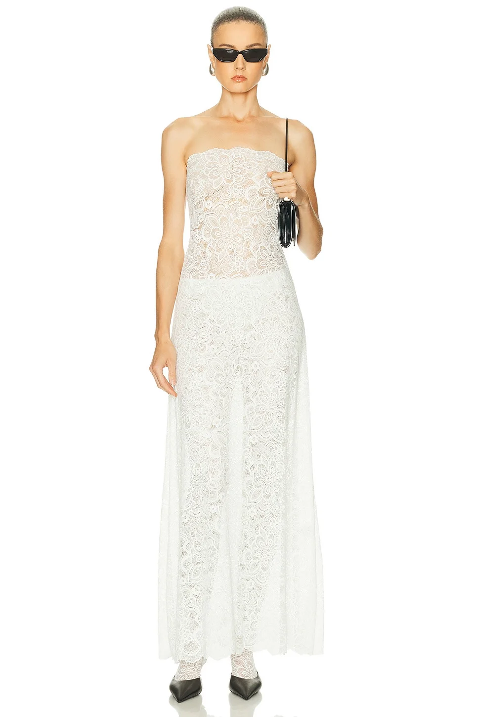 Details - 85% nylon, 9% spandex, 6% rayon - Hand wash - Unlined - Pull-on styling - Elasticized neckline - Lightweight lace fabric - Garment is intentionally sheer, undergarments will show through. - Please note undergarment not included - Made in Portugal - Our Style No. BAFE-WD14 - Manufacturer Style No. BFPF25D07