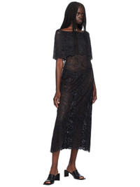 A-line lightweight and sheer stretch nylon-blend lace dress. Floral pattern and scalloped edges throughout. · Off-the-shoulder construction · Foldover neck Supplier color: Black 90% nylon, 8% spandex, 2% rayon. Made in Portugal 242868F055003