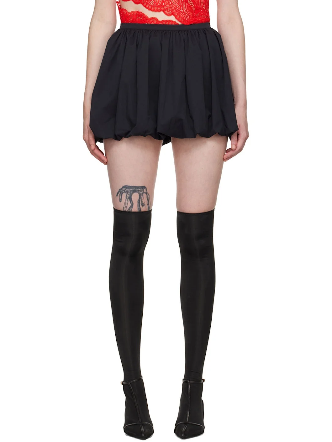 Stretch cotton-blend twill skirt. Gathering throughout. · Bubble hem · Concealed zip closure at back · Full cupro- and viscose-blend satin lining Supplier color: Black Body: 67% cotton, 29% polyester, 4% elastane. Lining: 50% cupro, 50% viscose. Made in Portugal 242868F090001