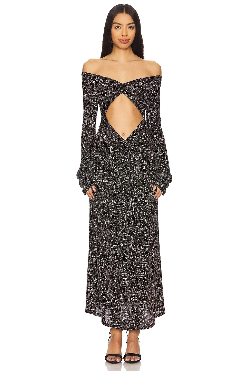 - 92% nylon 5% spandex 3% metallic fiber - Made in Portugal - Dry clean only - Unlined - Pull-on styling - Cut-out detail at front - Jersey fabric with metallic threading - Neckline to hem measures approx 58" in length - Revolve Style No. BAFE-WD8 - Manufacturer Style No. BFRS25D05