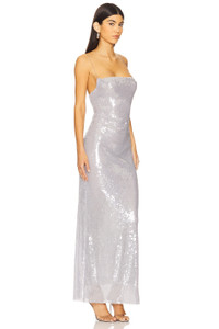 - Self & Lining: 100% polyester Contrast Fabric: 93% polyester 7% elastane - Hand wash - Fully lined - Pull-on styling - Open back with back tie closure - Midweight sequin embellished fabric - Revolve Style No. BECA-WD706 - Manufacturer Style No. A25-12655