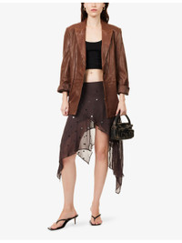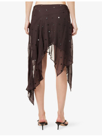 PRODUCT DETAILS - Bec + Bridge woven mini skirt - 100% viscose; lining 100% polyester - Concealed zip fastening at side - Regular fit, mid-waist, all-over sequin embellishment, all-over crepe texture, fully lined, asymmetric hem - Specialist dry clean - Made in Australia - True to size - Size UK 8: length 17in / 44cm - Model is 5ft 10in/1.78m and wears a size UK 8 - Lightweight, stretchy Ref: R04512712