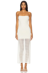 - Self: 60% nylon 40% cotton Lining: 57% cotton 25% nylon 18% elastane - Made in China - Hand wash - Partially lined - Pull-on styling - Ribbed neckline - Lightweight knit fabric with side seam slits - Neckline to hem measures approx 49.5" in length - Revolve Style No. BECA-WD644 - Manufacturer Style No. W24-12162