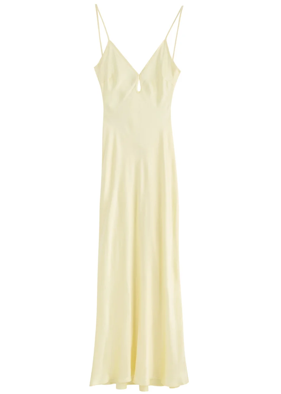 Info & Care Bec & Bridge satin dress Keyhole cut-out at V-neck, open back; Adjustable tie-fastening at back; 100% viscose Dry clean Size & Fit Length shoulder to hem: 69 inches/ 175cm Midweight Slim fit, relaxed through hips Model is 5'9"/ 175cm and wears a size UK8