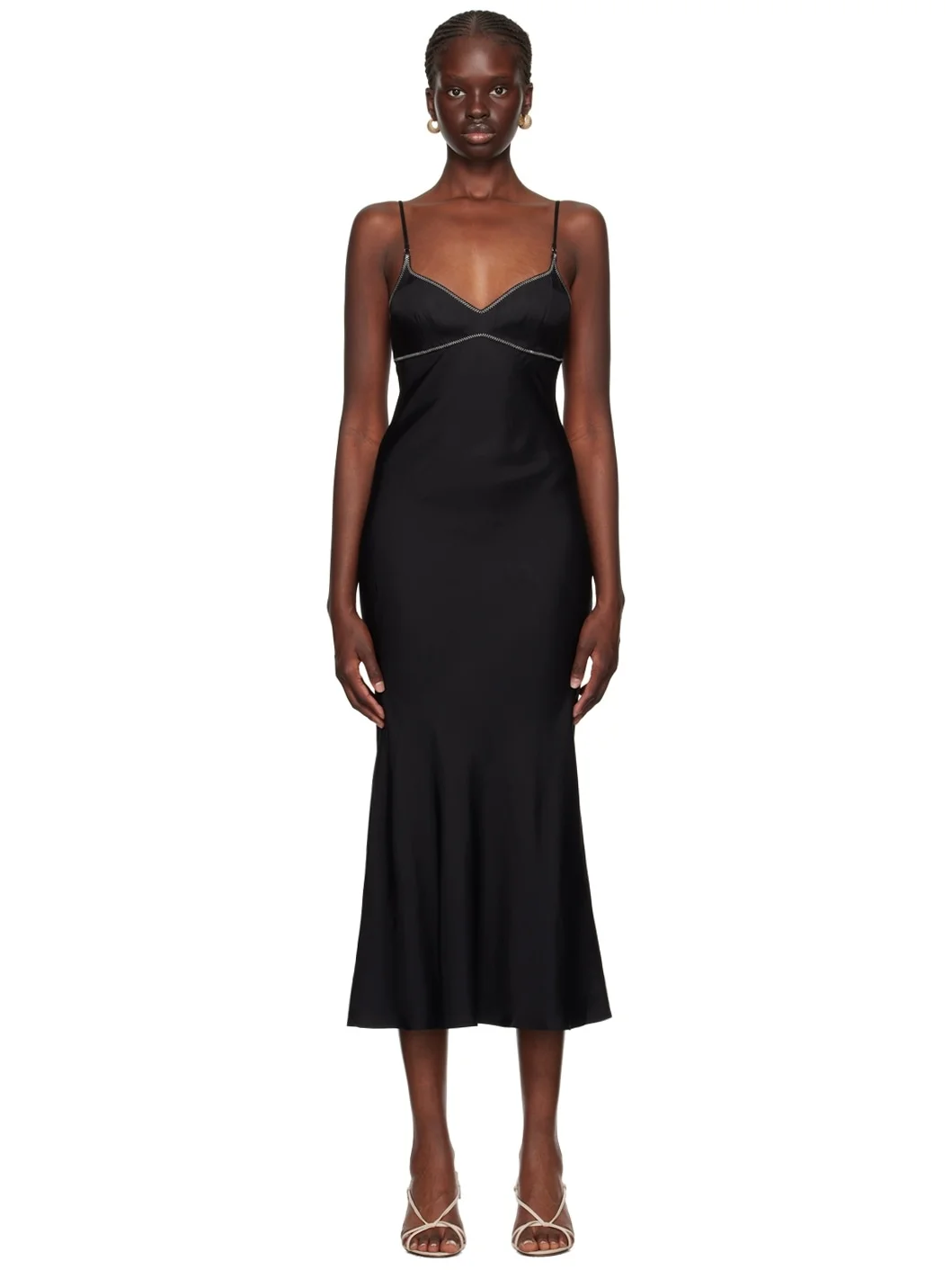 Viscose- and rayon-blend faille dress. · Sweetheart neck · Adjustable spaghetti straps · Concealed zip closure at back · Contrast stitching in white Supplier color: Ivory/Black 55% viscose, 45% rayon. Made in China 232880F055022
