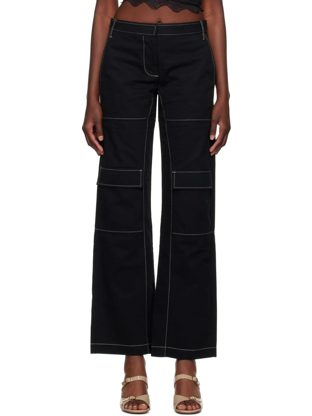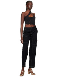 Relaxed-fit cotton twill trousers. · Paneled construction · Belt loops · Four-pocket styling · Zip-fly · Flap pockets at knees · Hammer loop at back leg · Unlined · Contrast stitching in white Supplier color: Black/Oyster 100% cotton. Made in China 232880F087008