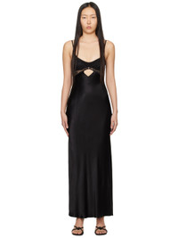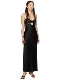 Bias-cut viscose twill dress. Stretch nylon lace trim throughout. · Layered construction · V-neck · Cutout at chest and back · Adjustable spaghetti straps · Hook-eye fastening at back · Concealed zip closure at back Supplier color: Black Body: 100% viscose. Trim: 89% nylon, 11% elastane. Trim 2: 91% polyester, 9% elastane. Made in Australia 241880F055022