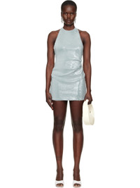 Sequinned polyester mesh minidress. · Round neck · Tuck at side seam · Hook-eye halter strap · Zip closure at open back · Fully lined Supplier color: Mineral blue Body: 100% polyester. Lining: 95% polyester, 5% elastane. Made in Australia 251880F052006