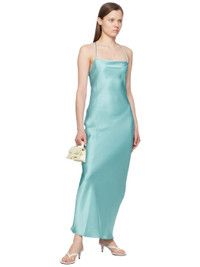 Bias-cut polyester satin dress. · Cowl neck · Flared hem · Self-tie fastening at low back · Unlined Supplier color: Sea spray 100% polyester. Made in Australia 241880F055000