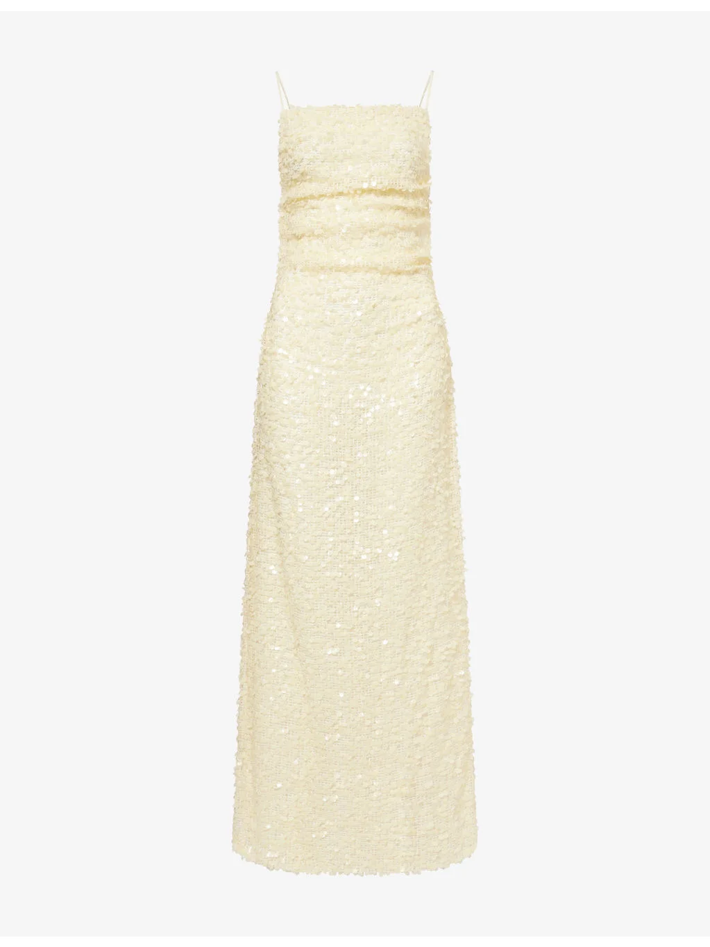 PRODUCT DETAILS - Bec + Bridge woven maxi dress - 95% polyester, 5% elastane; lining 100% polyester - Concealed zip fastening - Regular fit, straight neckline, sleeveless, low open back, draped design, all-over sequin design, lined, split hem - Dry clean - True to size - Size UK 8: length 55in / 140cm - Model is 5ft 10in/1.78m and wears a size UK 8 - Lightweight, non-stretch Ref: R04585907