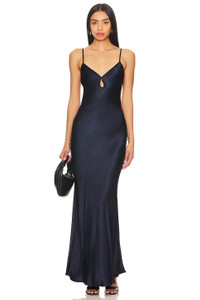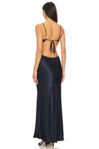 - 100% viscose - Made in Australia - Dry clean only - Unlined - Pull-on styling - Open back with tie closure - Keyhole cut-out at bust Textured satin fabric with contrast trim - Revolve Style No. BECA-WD566 - Manufacturer Style No. 10788