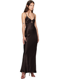 Viscose satin maxi dress. · Plunging V-neck · Keyhole at chest · Adjustable spaghetti straps · Self-tie fastening at open back Supplier color: Dark chocolate 100% viscose. Made in Australia 251880F055009