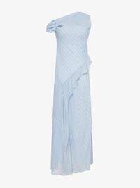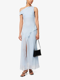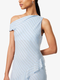 PRODUCT DETAILS - Bec + Bridge woven maxi dress - 100% viscose; lining 100% polyester - Slim fit, asymmetric neckline, sleeveless, ruffle trim, stripe pattern, split hem, lined - Dry clean - True to size - Model is 5ft 10in/1.78m and wears a size UK 8 - Lightweight, non-stretch Ref: R04449880