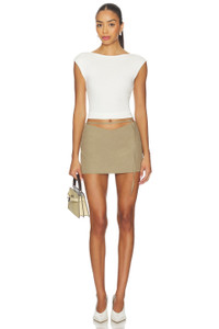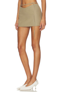 - Self: 54% tencel 48% cotton Lining: 100% cotton - Dry clean only - Fully lined - Hidden back zipper closure - Twill fabric with adjustable waist strap - Skirt measures approx 10" in length - Revolve Style No. BECA-WQ99 - Manufacturer Style No. S25-30770