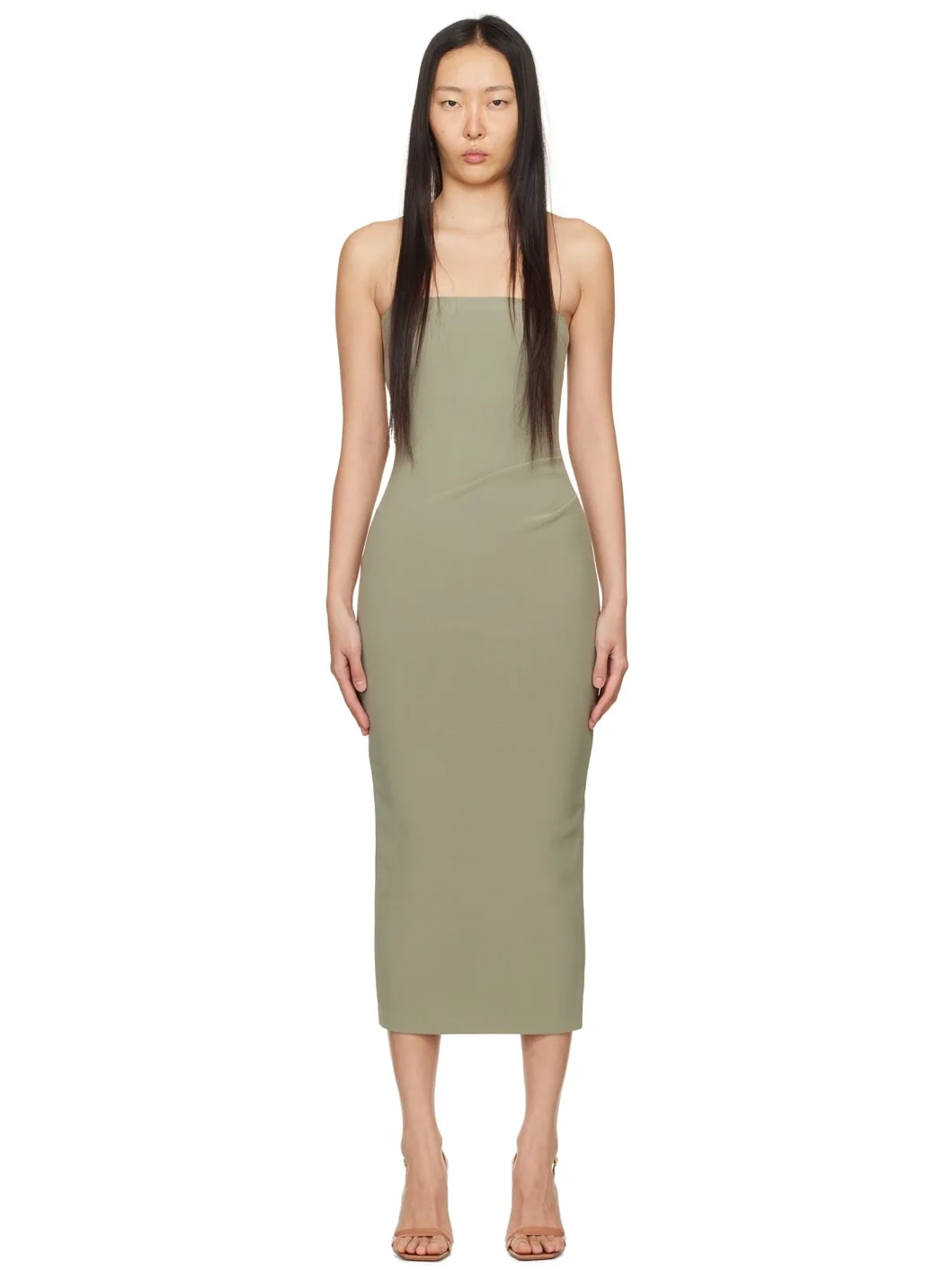 Stretch polyester crepe dress. · Straight neck · Darts at chest · Ruching at side seams · Zip closure at back Supplier color: Sage 95% polyester, 5% elastane. Made in Australia 241880F054004