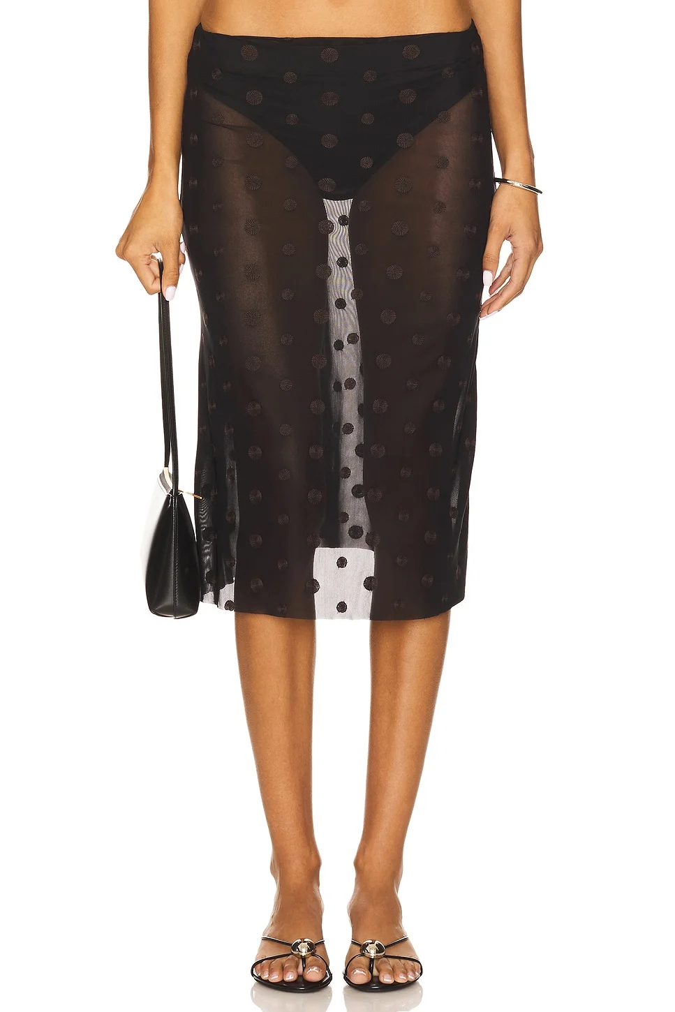 - Self: 93% polyester 7% elastane Lining: 95% polyester 5% elastane - Hand wash - Partially lined with brief - Elasticized waistband Gusset button snap closure - Low-rise fit - Mesh fabric - Skirt measures approx 26" in length - Revolve Style No. BECA-WQ96 - Manufacturer Style No. S25-30780