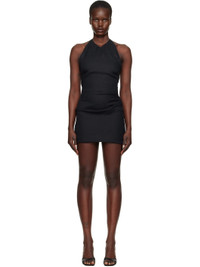 Plain-woven linen minidress. · V-neck · Gathering at side seams · Hook-eye halter strap · Zip closure at open back Supplier color: Black Body: 100% linen. Lining: 100% cotton. Made in Australia 251880F052005