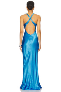 - 100% viscose - Dry clean only - Partially lined at bust - Hidden back zip closure - Back criss cross straps - Heavyweight charmeuse fabric - Revolve Style No. BECA-WD746 - Manufacturer Style No. W25-12566