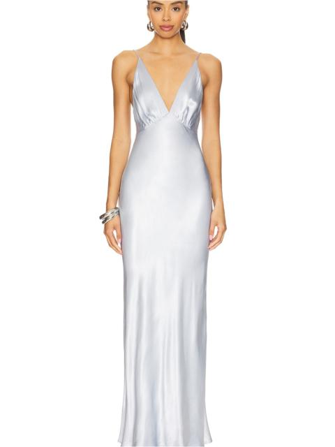 - 100% viscose - Dry clean only - Partially lined at bust - Pull-on styling - V-neck with ruched cups - Open back - Midweight satin fabric - Revolve Style No. BECA-WD725 - Manufacturer Style No. BM-11287