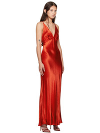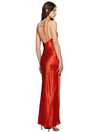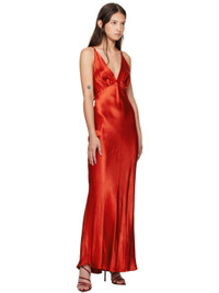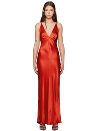 Bias-cut viscose satin maxi dress. · Plunging V-neck · Gathering at chest · Fixed spaghetti shoulder straps · Low back · Unlined Supplier color: Crimson 100% viscose. Made in Australia 251880F055010