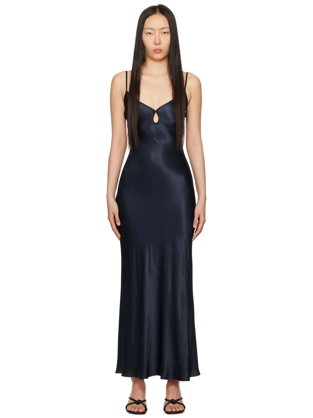 Crinkled viscose satin dress. · Keyhole cutout at V-neck · Darts at chest · Self-tie shoulder straps · Low back Supplier color: Ink/Black 100% viscose. Made in Australia 241880F055016