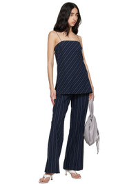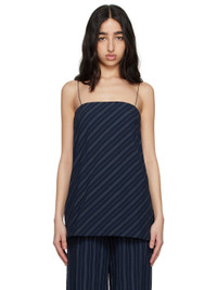 Stretch cotton seersucker top. Stripes throughout. · Straight neck · Darts at chest · Vented side seams · Concealed zip closure at side · Fixed spaghetti straps · Tucks at back · Integrated bra-style underlay with elasticized hem Supplier color: Ink/Ivory stripe 95% cotton, 5% elastane. Made in Australia 251880F111010