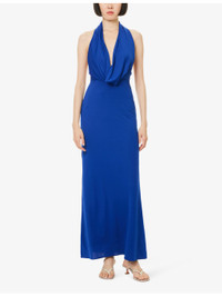 PRODUCT DETAILS - Bec + Bridge stretch-woven maxi dress - 87% polyester, 13% elastane; lining 95% polyester, 5% elastane - Regular fit, halterneck, cowl-neck, open at back, fully lined - Hand wash cold - Made in Australia - True to size - Size UK 8: length 58in / 148cm - Model is 5ft 10in/1.78m and wears a size UK 8 - Lightweight, stretchy Ref: R04528316