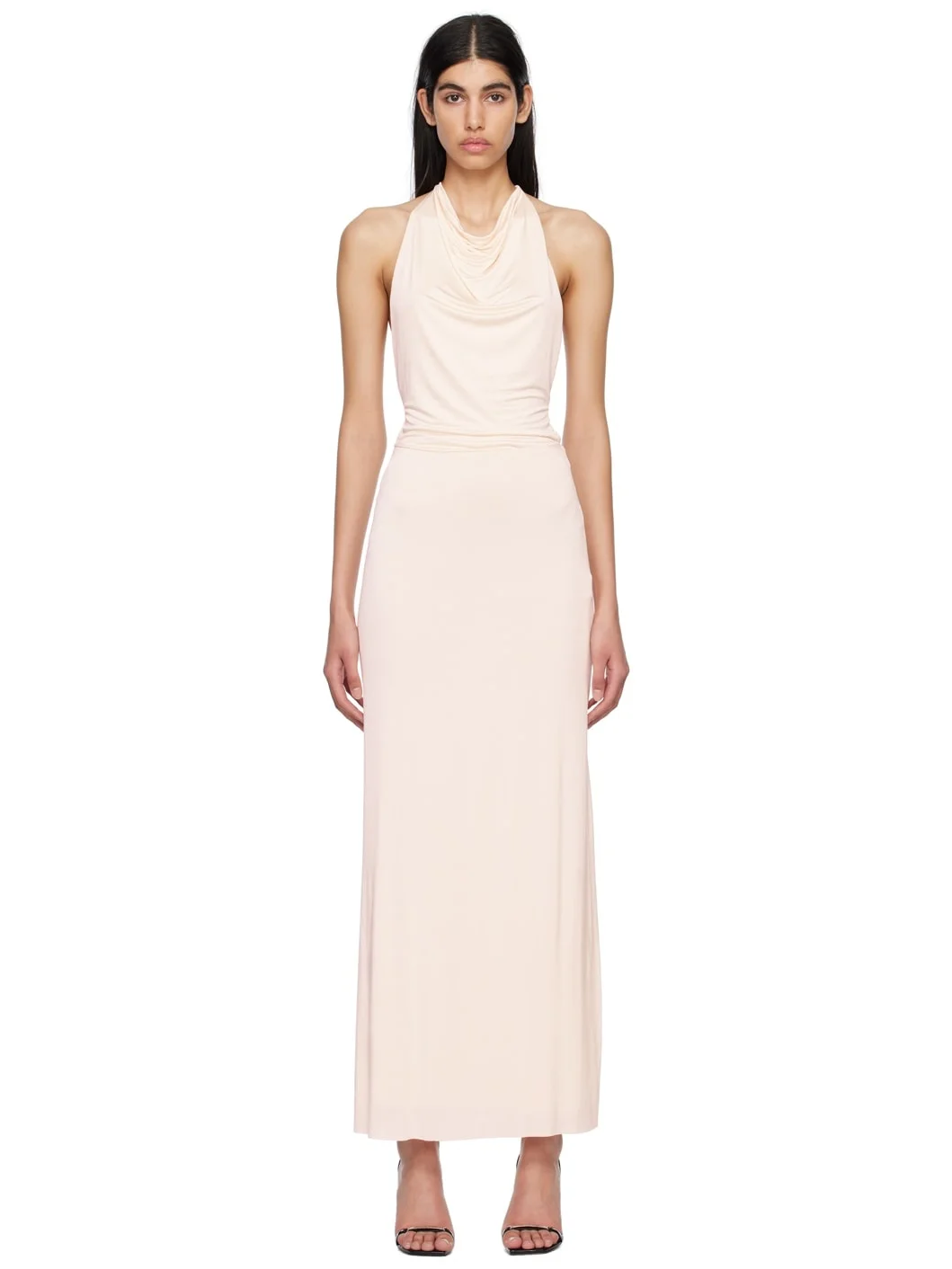 Stretch acetate satin dress. · Cowl neck · Elasticized trim at waist · Self-tie halter strap · Tab-slot fastening at low back · Full satin lining Supplier color: Cream 88% acetate, 12% elastane. Made in Australia 231880F055000