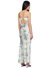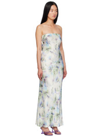 Bias-cut viscose hammered satin dress. Floral pattern printed throughout. · Strapless construction · Elasticized straight neck · Darts at chest · Hook-eye strap at low back · Draping at back · Unlined Supplier color: Watercolour floral 100% viscose. Made in Australia 241880F055030