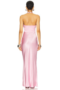 - 100% viscose - Dry clean only - Partially lined - Back S-hook closure at halter and hidden side zip closure - Front cut-out design - Midweight textured charmeuse fabric - Revolve Style No. BECA-WD736 - Manufacturer Style No. W25-12359