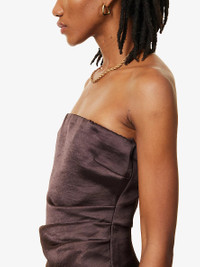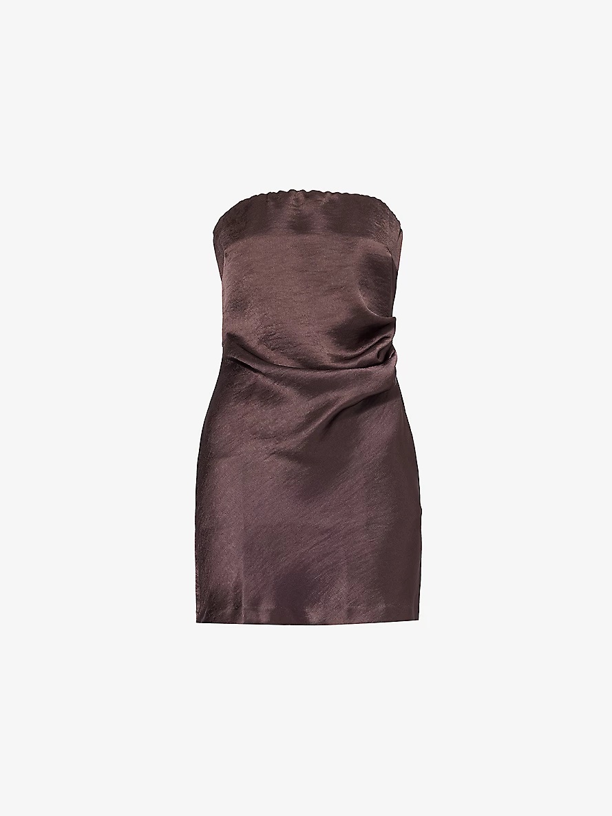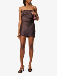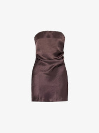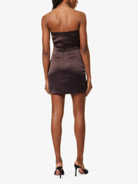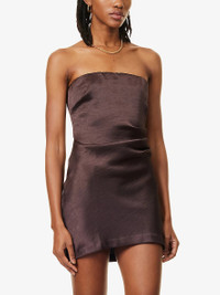 PRODUCT DETAILS - Bec + Bridge recycled polyester-blend mini dress - 55% recycled polyester, 45% polyester - Concealed zip fastening at back - Slim fit, strapless, satin texture - Dry clean only - True to size - Model is 5ft 10in/1.78m and wears a size UK 8 - Lightweight, non-stretch Ref: R04401243