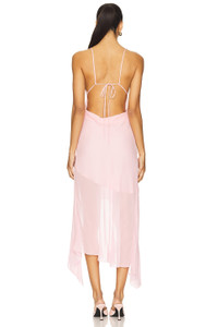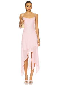 - Self: 100% viscose Lining: 100% polyester - Dry clean only - Fully lined - Back tie closure - Draped neckline - Asymmetrical hem - Lightweight crepe fabric - Revolve Style No. BECA-WD737 - Manufacturer Style No. W25-12673