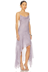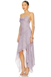 - Self: 100% viscose Lining: 100% polyester - Dry clean only - Fully lined - Back lace-up tie closure - Draped neckline - Asymmetrical hem - Lightweight chiffon fabric - Revolve Style No. BECA-WD707 - Manufacturer Style No. A25-12673P