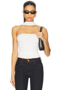 - 87% polyester 13% elastane - Hand wash cold - Reverse halterneck styling - Midweight stretch jersey fabric with ruching - Revolve Style No. BECA-WS150 - Manufacturer Style No. A25-21707